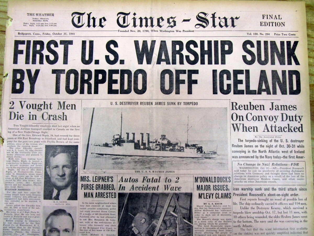 El efecto del “mapa nazi” se amplificó pocos días después, el 31 de octubre de 1941, cuando el destructor estadounidense USS Reuben James fue hundido por un submarino alemán, mientras escoltaba un convoy rumbo a Islandia. Murieron más de cien marinos y la “guerra lejana” dejó de ser abstracta.