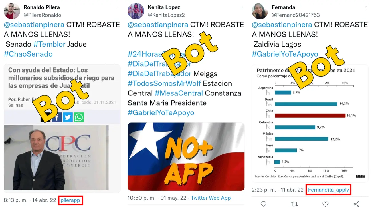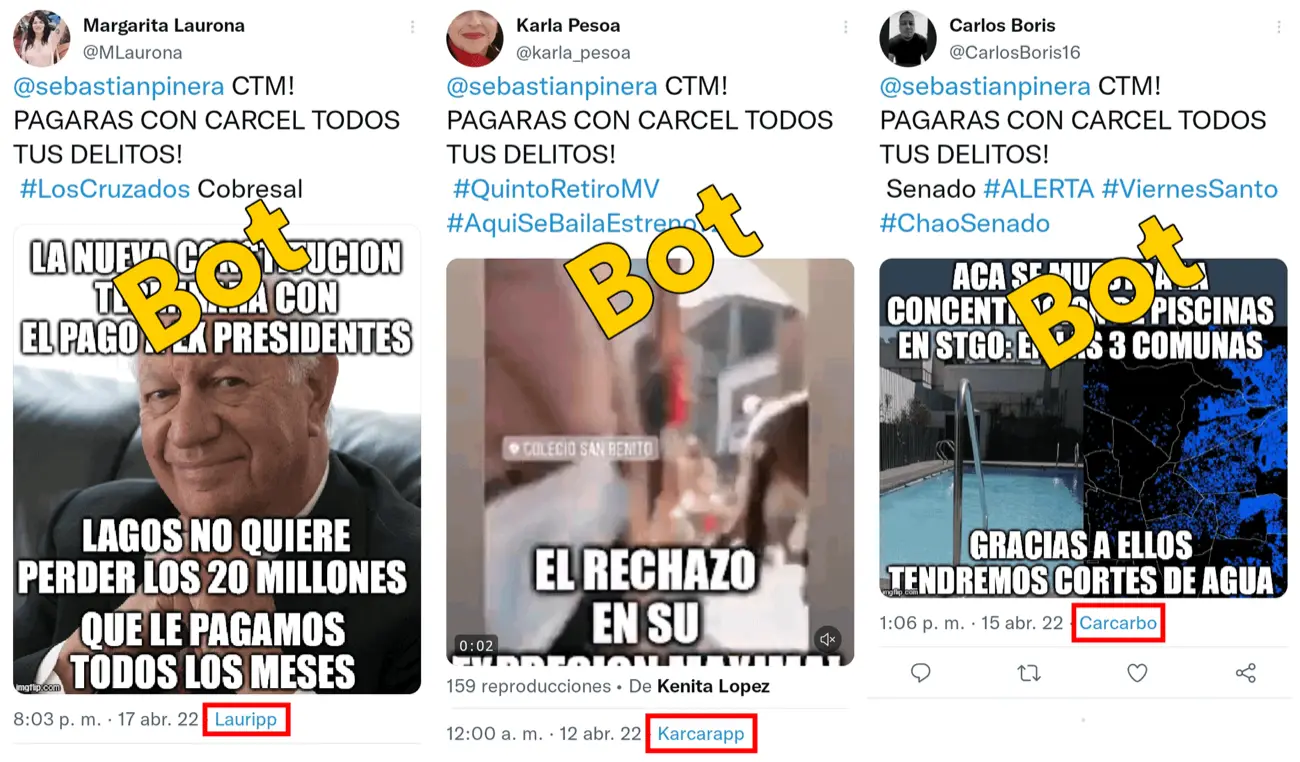 Una pequeña red de cuentas está generando propaganda en contra del Senado, actores políticos de derecha, y a favor de la izquierda chilena. Algunas se hacen pasar por venezolanos, cubanos y nicaragüenses