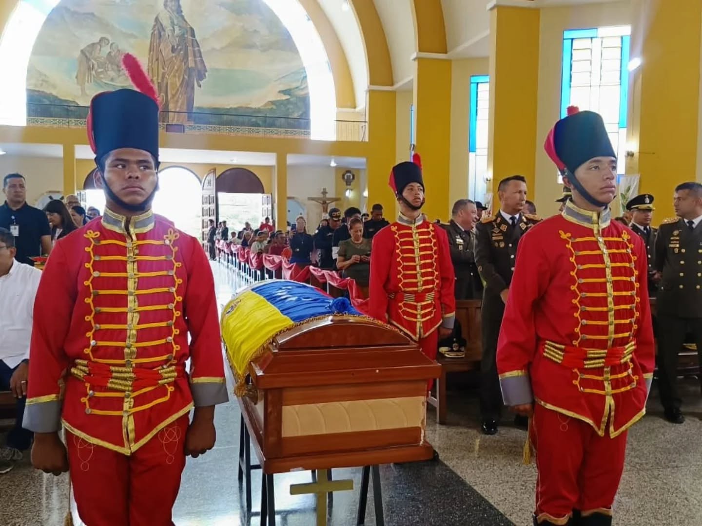 Efectivos de la Aviación Militar, la Guardia Nacional y la Milicia estuvieron en el acto velatorio que presidió el general de brigada Yran Yromides Jaure Acosta, Comandante de la Brigada de Defensa Área Los Llanos, junto al alcalde de la zona, Daniel Charaima.