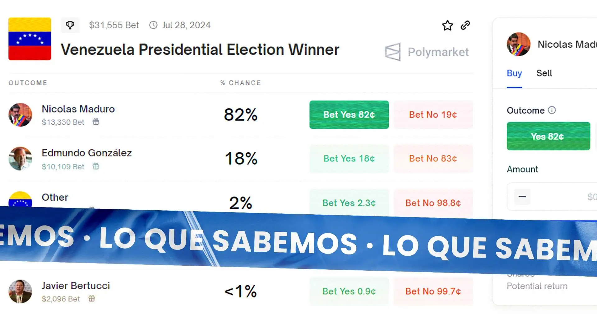 Pese a que la dinámica que se muestra en la página de Polymarket sobre las apuestas por el posible ganador de las elecciones presidenciales en el país es real, esto no significa que el pronóstico se vea reflejado en los resultados electorales ni que en Estados Unidos se inclinen por Nicolás Maduro.