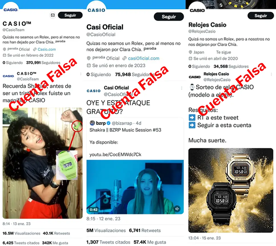 La única cuenta oficial de Casio que ha compartido memes alusivos a la canción de Shakira y Bizarrap es la cuenta de Instagram @casiorelojes_es, una cuenta verificada que representa a la marca en España.