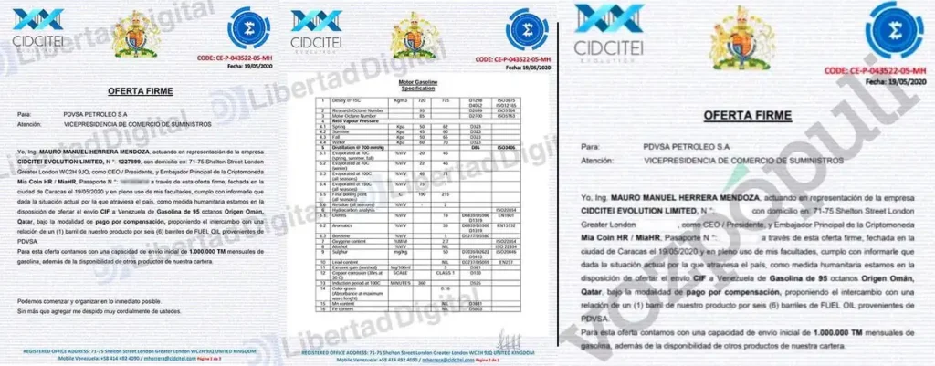 La oferta enviada por Aldama a Rodríguez estaba firmada por Mauro Manuel Herrera Mendoza como CEO de Cidcitei Evolution Limited y “embajador principal” de la criptomoneda Mia Coin HR/MíaHR, e iba dirigido a la Vicepresidencia de Comercio y Suministro de PDVSA. Los mensajes intervenidos por la Guardia Civil española muestran que la interlocución directa era entre Aldama y Delcy, pero no prueban que Rodríguez y Herrera se conozcan personalmente ni que la operación llegara a ejecutarse.