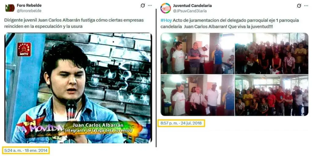 Los vínculos de Albarrán con el chavismo datan de hace por lo menos 10 años. En 2014 fue invitado como dirigente juvenil al programa “La Movida”, transmitido por el canal Asamblea Nacional Televisión (ANTV) en 2014. En 2018 aparece de nuevo, cuando fue juramentado como delegado parroquial del Partido Socialista Unido de Venezuela (PSUV) en Caracas.