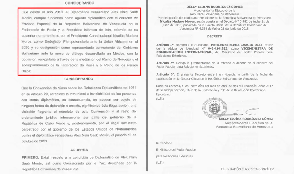 Finalmente, el número y la fecha de publicación en Gaceta Oficial que había oficializado la designación de “Enviado Especial”, se hicieron públicos el 7 de noviembre de 2022, pero no por parte de voceros del régimen venezolano, sino gracias a un documento del juicio de Saab en Estados Unidos, que ese día se publicó en línea.