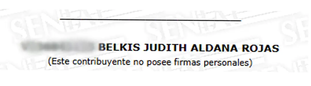 Según el artículo, “otra de las irregularidades detectadas es la no concordancia entre el nombre que aparece impreso en el casillero y la firma correspondiente”. Para verificar si esto es cierto, se identificó en la imagen los dos últimos números de cédulas de identidad para buscarlos en la página del CNE. Al no poder ingresar a este sitio, se aplicó la búsqueda en la web del Servicio Nacional Integrado de Administración Aduanera y Tributaria (Seniat), y en ambos casos se encontraron coincidencias.