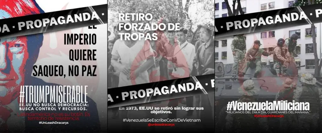 En sus publicaciones, Dracarys recurre a un tono altamente emocional y descalificador, con piezas audiovisuales que incorporan elementos generados o manipulados con IA y que, a veces, deshumanizan a adversarios del gobierno de Maduro. Su comunidad replica estas dinámicas: participa en etiquetas, y difunde textos, memes e imágenes con el logo del dragón y la etiqueta #UnleashDracarys.