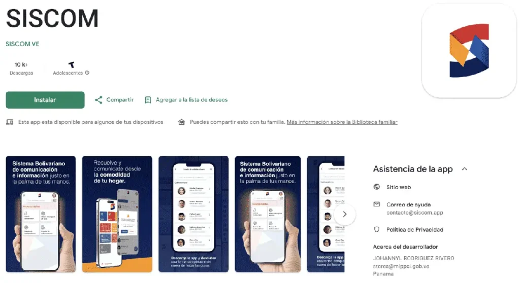 La app del Siscom, disponible desde marzo de 2024 en tiendas como Google Play Store y App Store, acumulaba más de 10 mil descargas para mayo de 2025. Una de sus imágenes promocionales la describe como “el Sistema Bolivariano de Comunicación e Información (Sibci) justo en la palma de tu mano”.