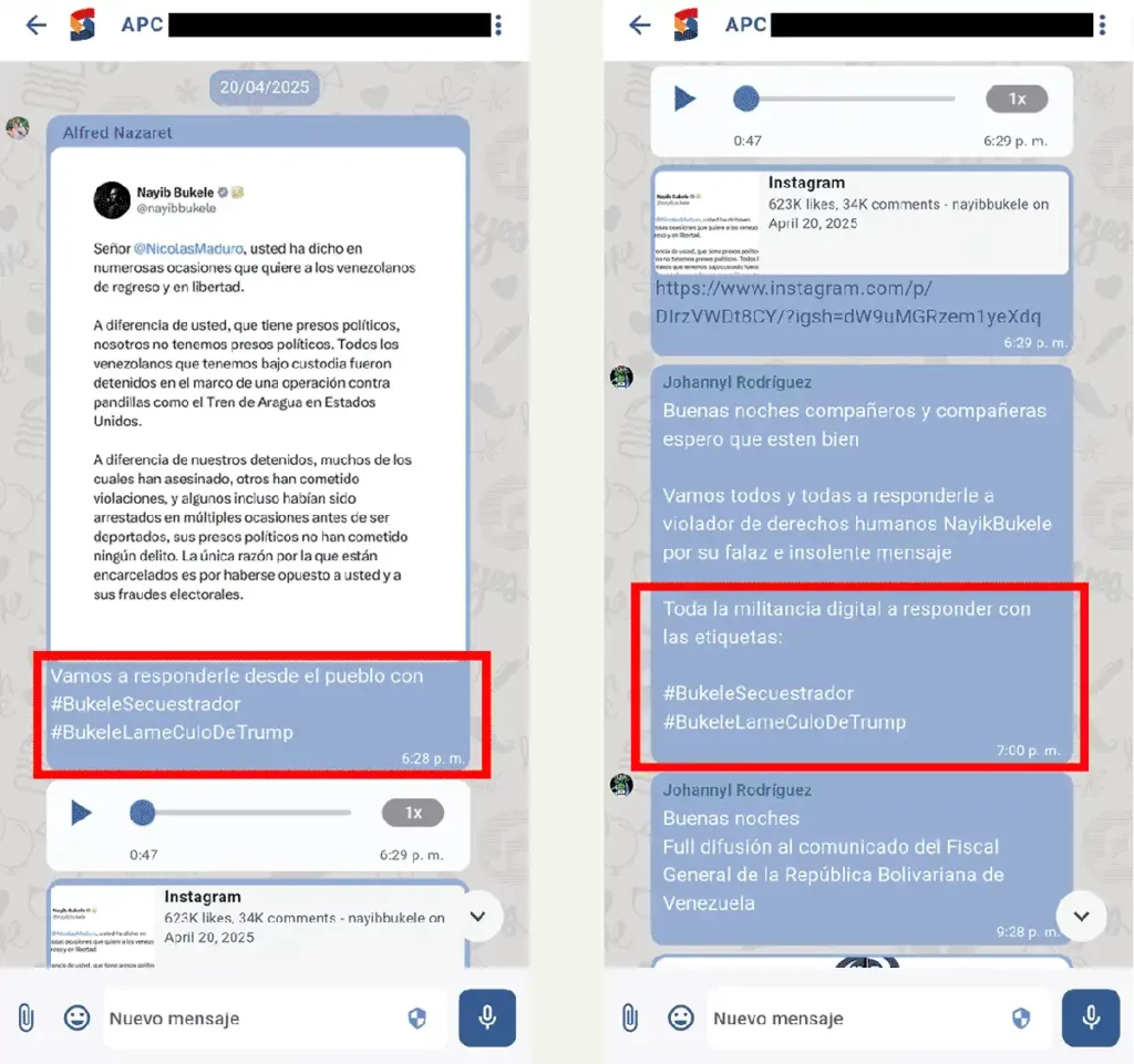 La campaña, que surgió como respuesta a la deportación de ciudadanos venezolanos desde Estados Unidos hacia El Salvador, incluyó dos etiquetas: #BukeleSecuestrador y #BukeleLameCuloDeTrump. Sin embargo, no fue una reacción ciudadana espontánea, sino una operación planificada desde el Estado.
