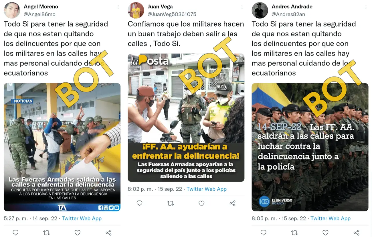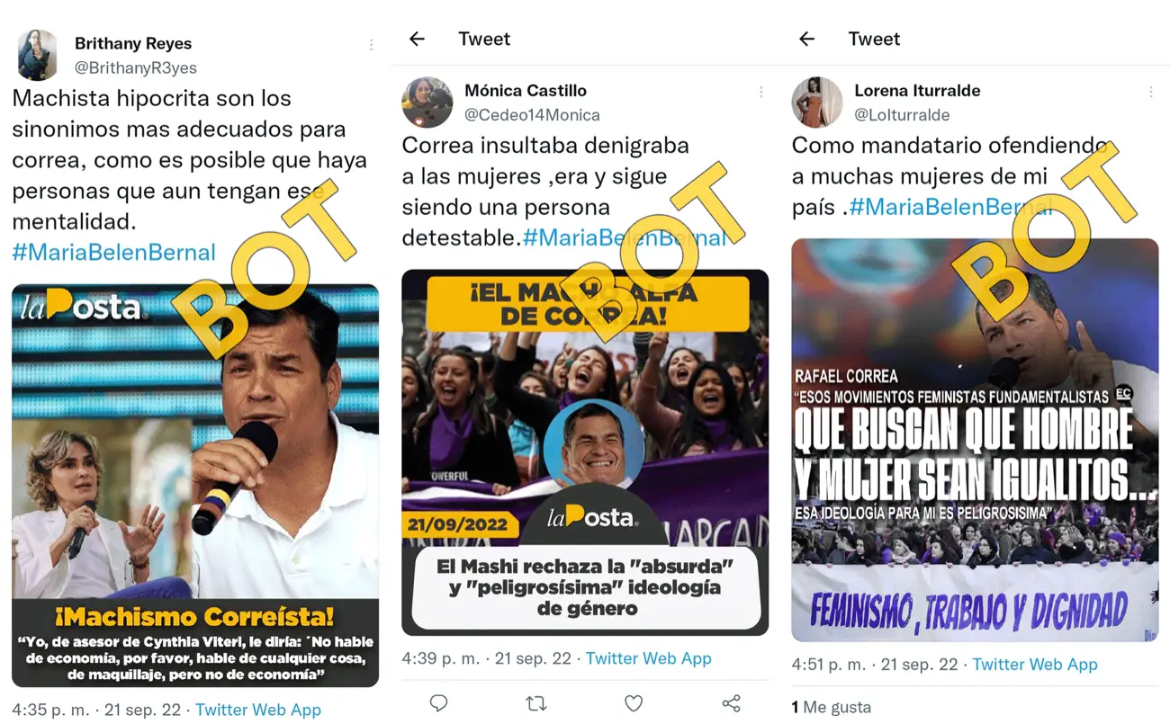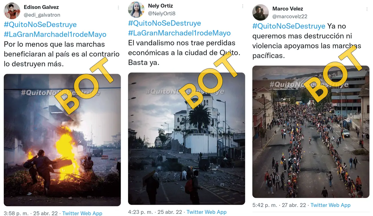 Las cuentas falsas amplifican de forma no auténtica, coordinada y automatizada tweets del presidente de Ecuador y contenido propagandístico