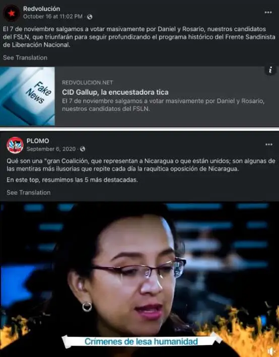 Meta publicó el comunicado sobre el desmantelamiento el 1 de noviembre de 2021, una semana antes de que Ortega y Murillo se reeligieran —por cuarta vez consecutiva él, y segunda ella— como presidente y vicepresidenta de Nicaragua. Esas votaciones fueron fraudulentas, pues, según observadores independientes, hubo hasta un 82% de abstención y el gobierno impidió la participación de la oposición encarcelando a sus dirigentes.
