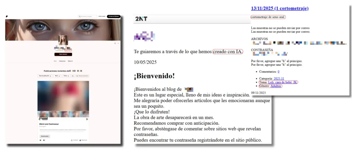 - Otros dirigen a los usuarios a páginas web externas en las que venden pornografía infantil de menores generada con IA