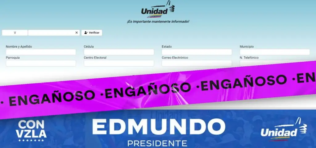 Otras publicaciones difunden el enlace directo a la planilla de datos con el logo de la Unidad, un registro que puede confundir al electorado. Sin embargo, no hay rastro que vincule este portal con un plan del gobierno para obtener datos de votantes opositores, como lo refieren algunos usuarios.