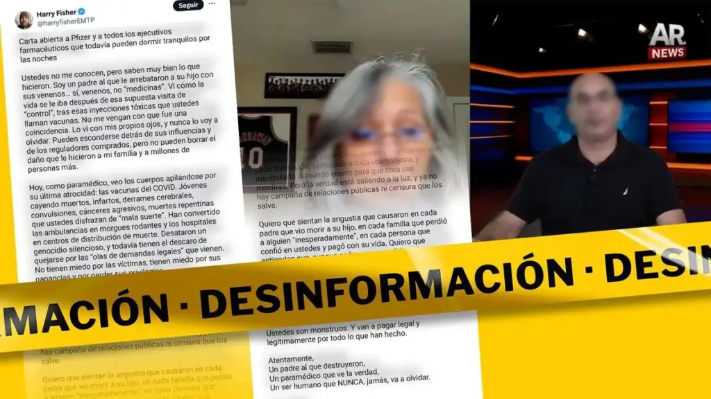 Una carta abierta dirigida a Pfizer y a ejecutivos de la industria farmacéutica mundial, firmada por el ex paramédico estadounidense Harry Fisher, circula en redes sociales con acusaciones alarmantes: atribuye a las vacunas contra la COVID-19 muertes y graves daños a la salud de la población más joven. Presentada como denuncia médica, se trata de un texto sin respaldo científico que recicla argumentos previamente desmentidos por autoridades sanitarias y estudios revisados por pares.