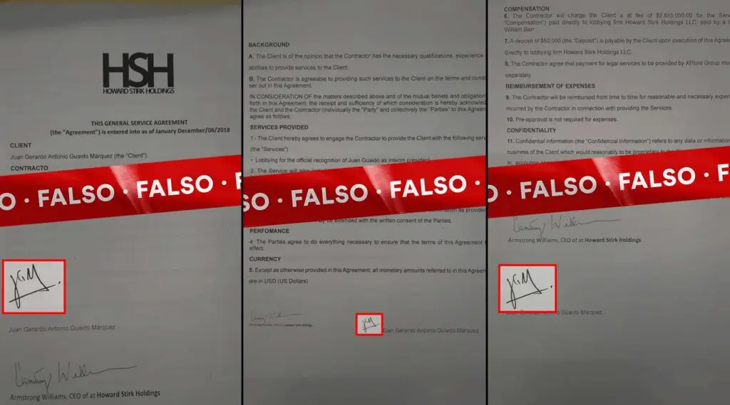 El documento que lleva las firmas de Juan Guaidó y la del periodista estadounidense Armstrong Williams es una FALSIFICACIÓN