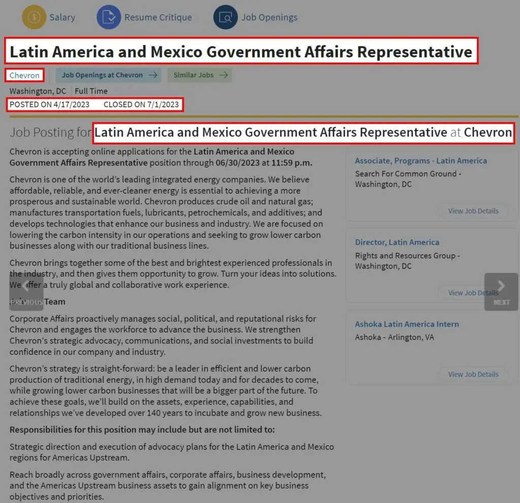 Esto probablemente implica que Lélis fue una de los postulantes a esta vacante, que envió su solicitud para formar parte de un proceso de reclutamiento de Chevron y que consiguió una entrevista, pero no prueba nada más.