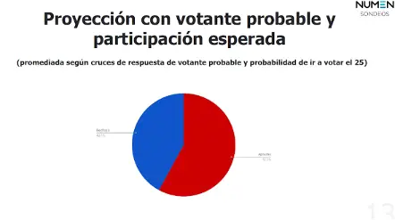 La empresa aseguraba haber realizado más de 18.000 encuestas online, un número enorme si se compara con el resto de los sondeos del mercado (por esos días se publicaban resultados con entre 700 y 1.900 entrevistados), gracias a que las personas eran reclutadas a través de redes sociales y avisos pagados. En ese momento, al ser contactados por LaBot para saber si alguien había encargado el estudio de opinión, desde Numen en Argentina reconocieron que anteriormente habían hecho una encuesta para el Rechazo, pero en este caso era un cliente cuyo nombre no podían revelar. Con el paso de los días, Cerimedo terminó reconociendo en radio Duna que ese cliente eran empresarios pro Rechazo.