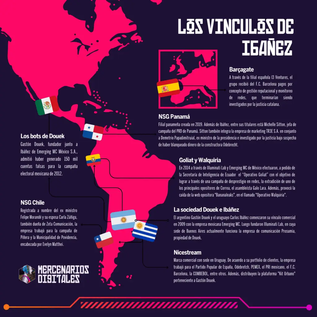 Pero este reportaje, parte de Mercenarios Digitales, una investigación en alianza con 20 medios, cinco organizaciones especialistas en investigación digital y estudiantes de maestría de Columbia University, coordinada por el Centro Latinoamericano de Investigación Periodística, CLIP, revela que Ibáñez ha estado detrás de otras campañas inauténticas en redes sociales en varios países de América Latina y que los servicios tecnológicos que les ha vendido a gobiernos de la región han levantado sospechas por problemas que van desde la ineficiencia hasta el espionaje.