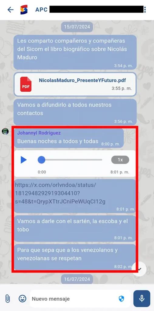 Pero sus cerca de 600 grupos de chat no se han usado solo como canal de propaganda. A través de ellos también se han activado campañas de desinformación, censura coordinada y hostigamiento digital, convirtiendo a militantes y empleados públicos en ejecutores de ataques contra adversarios del gobierno, incluidas figuras políticas nacionales e internacionales y, en algunos casos, periodistas.