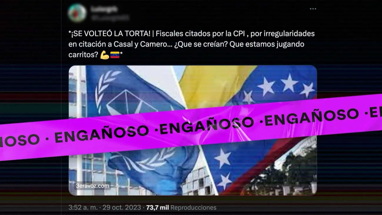 Circula en servicios de mensajería, Facebook y X diferentes mensajes que indican que la Corte Penal Internacional (CPI) habría citado a los fiscales del Ministerio Público que firmaron la citación contra Jesús María Casal, Mildred Camero y Roberto Adbul-Hadi miembros de la Comisión Nacional de Primarias (CNdP) por el supuesto fraude en las primarias de la oposición.