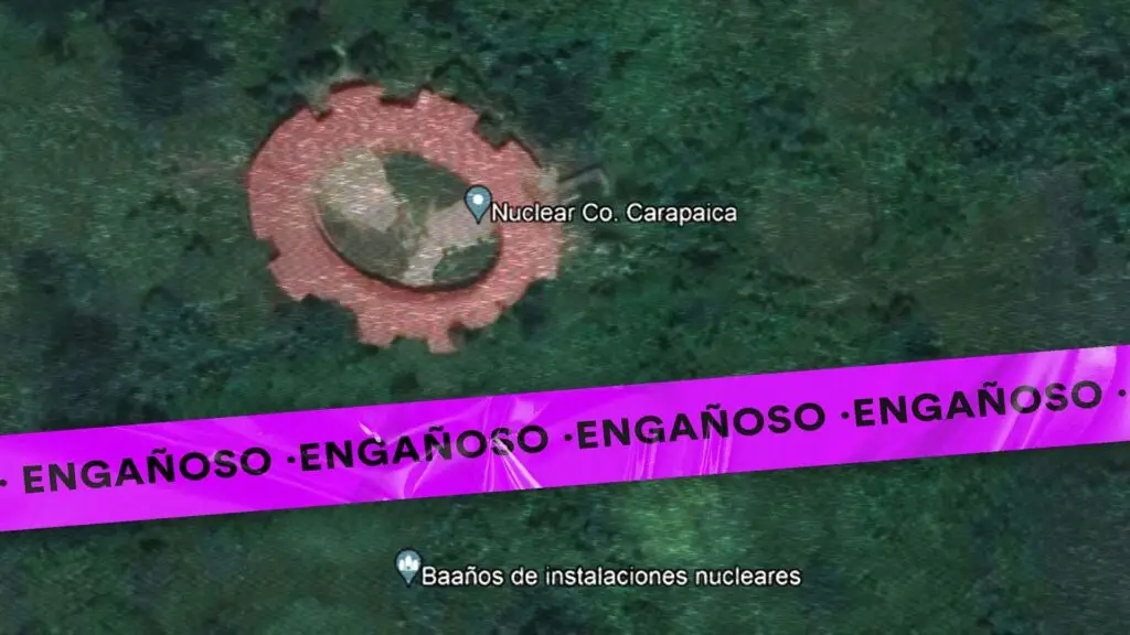La investigación de Cazadores de Fake News determinó que la publicación es engañosa porque, aunque es cierto que existe construcción elíptica en el municipio Alto Orinoco — que Google Earth identifica erróneamente como ‘Venezuela nuclear weapon factory’— no se trata de una fábrica de armas nucleares, sino que en realidad de un shabono o vivienda tradicional yanomami, construido con materiales no tradicionales en el marco de la Gran Misión Vivienda Venezuela.