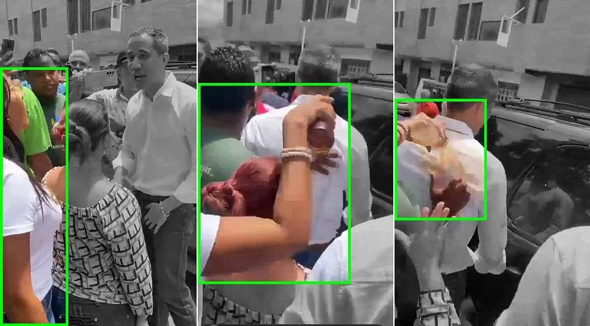 En otro de los videos que circuló en redes sociales, se confirma que la mujer de franela blanca, que también porta pulseras en la mano derecha, es quien realiza la agresión no provocada en contra del líder opositor: