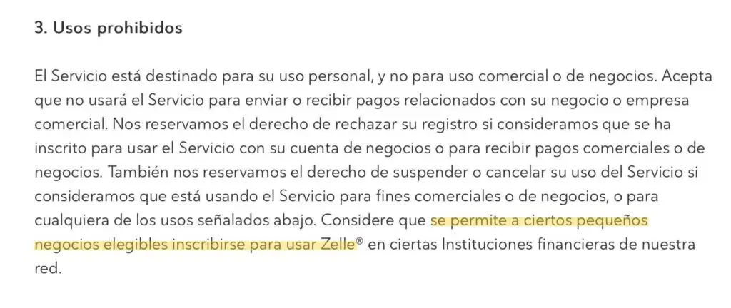 «Podemos suspender o eliminar la capacidad de un cliente de usar funciones digitales como Zelle si viola nuestros términos y condiciones»,