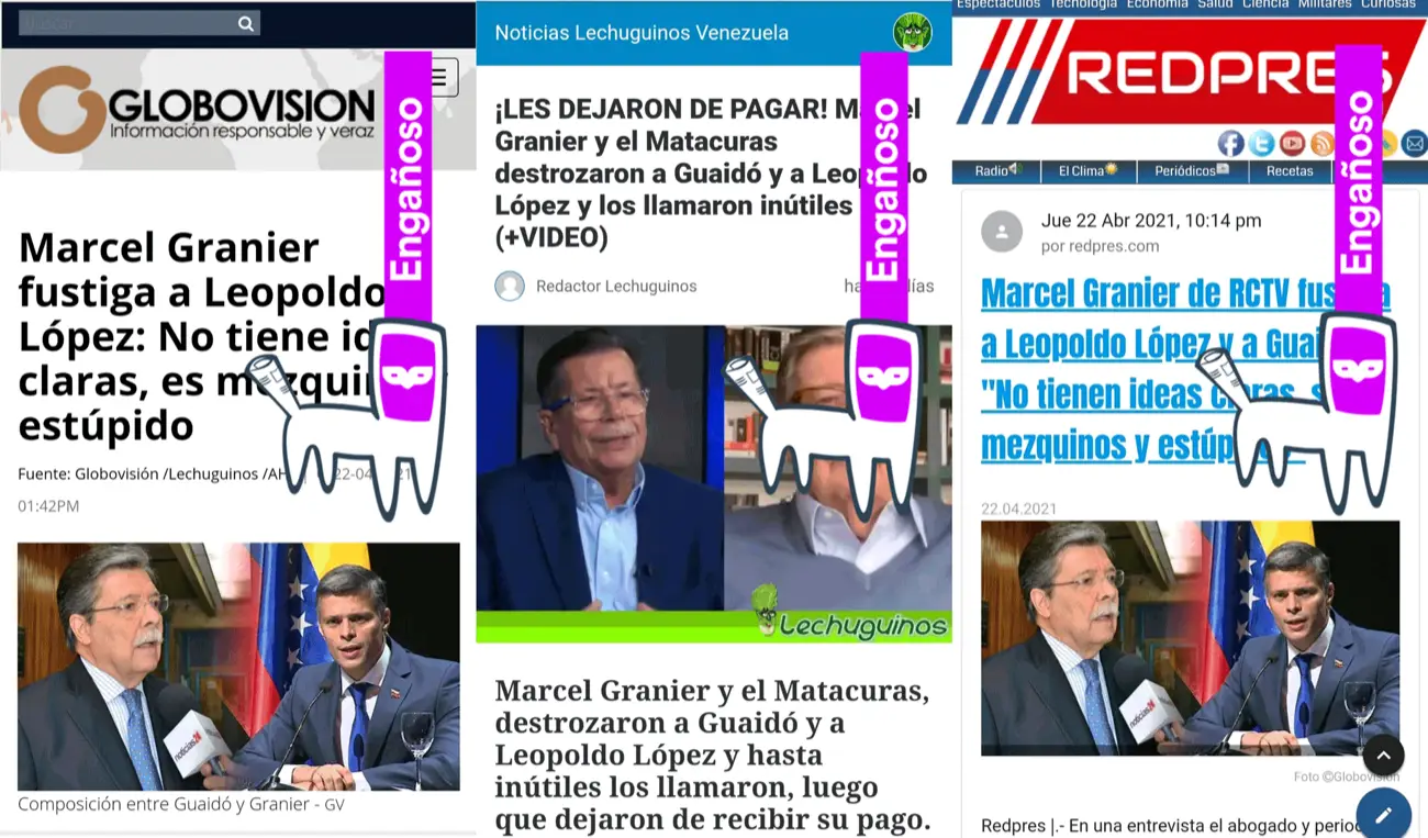 Varios artículos publicados en portales digitales oficialistas venezolanos, afirman de forma ENGAÑOSA que Marcel Granier, abogado, periodista y empresario venezolano fustigó a Leopoldo López y Juan Guaidó, indicando que son «inútiles, mezquinos y estúpidos«.