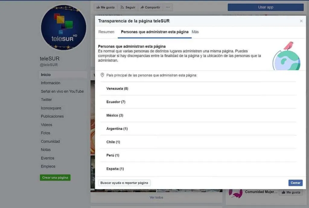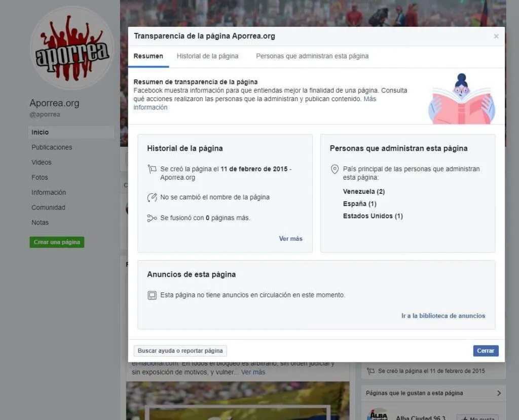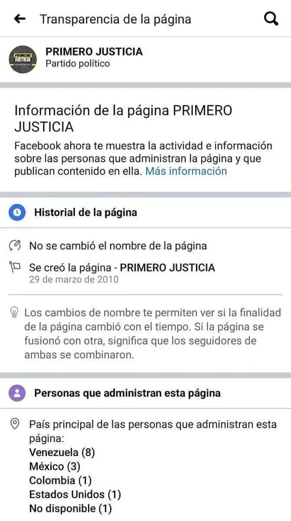 Los señalamientos del militante del partido Podemos parten de una falsa premisa, al afirmar que el señalado conjunto de páginas de Facebook relacionadas con la oposición venezolana, son administradas desde los Estados Unidos ya que ese país aparece como uno de los «países principales» de sus administradores en la sección «transparencia».