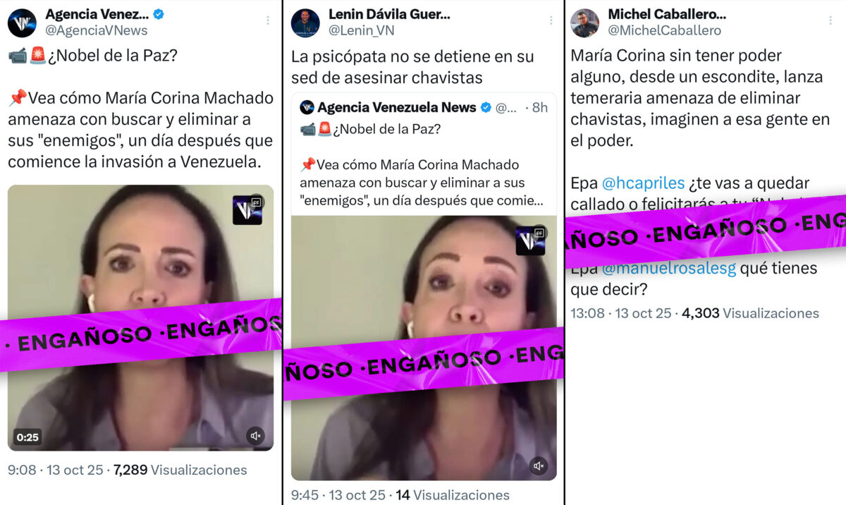 Sin embargo, el fragmento de su declaración está siendo descontextualizado por actores que regularmente desinforman, afines al gobierno de Maduro, para impulsar la narrativa de que Machado tendría planes de perseguir chavistas en un gobierno posterior a la salida del chavismo.