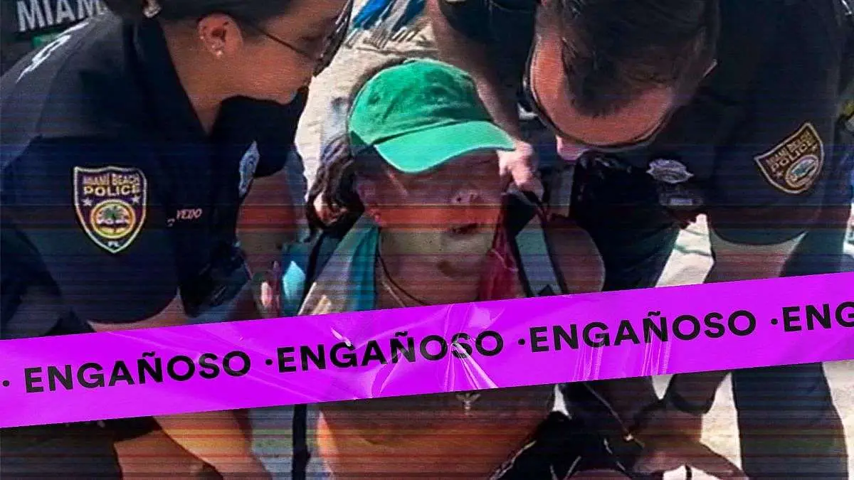 Un video viral con audio de la canción “Venezuela” muestra a unos policías sujetando forzadamente a un hombre de aspecto latino e indica en texto que “agarran a un venezolano vendiendo cerveza en la playa”.