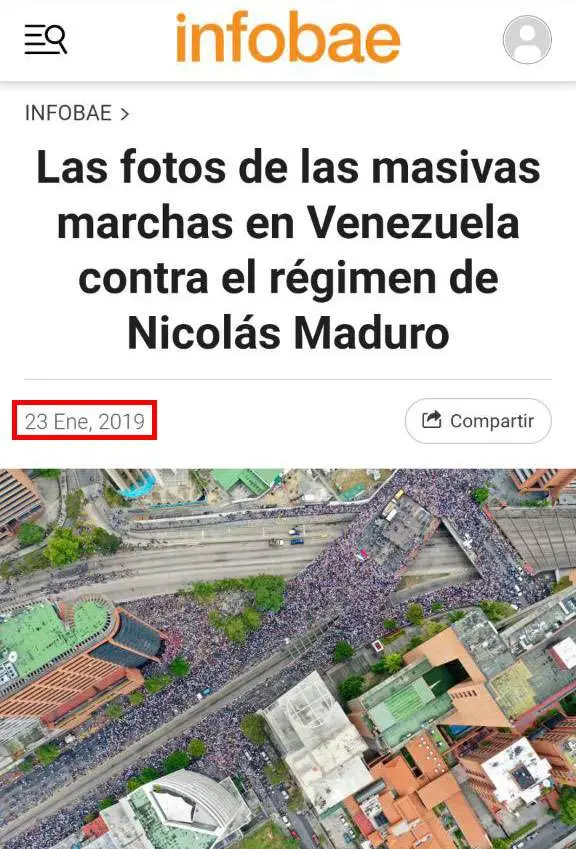 Haciendo un ejercicio de búsqueda inversa con la ayuda de Google Lens se pudo identificar una publicación de Infobae, del 23 de enero de 2019, en la que comparte una serie de fotografías de la notoria concentración de simpatizantes de Juan Guaidó en Caracas.