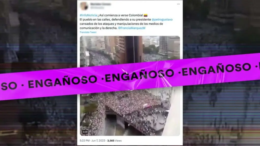 La agencia internacional AFP detectó este contenido en las redes sociales y lo calificó de falso tras demostrar que, efectivamente, las imágenes compartidas no correspondían a las manifestaciones de apoyo que Petro sí recibió en la capital colombiana.