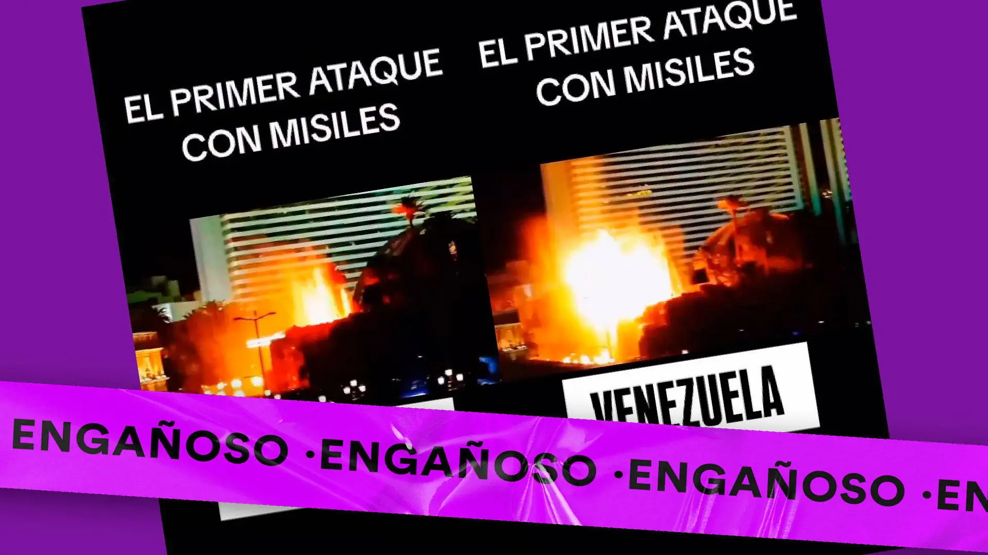 No es cierto que este video corresponde a un supuesto “primer ataque con misiles” dentro de Venezuela. Es una grabación de la erupción del volcán en el Hotel y Casino Mirage de Las Vegas, que cerró sus puertas en julio de 2024. Las imágenes fueron amplificadas descontextualizadamente tras ser tomadas de una “broma” por el Día de los Inocentes.