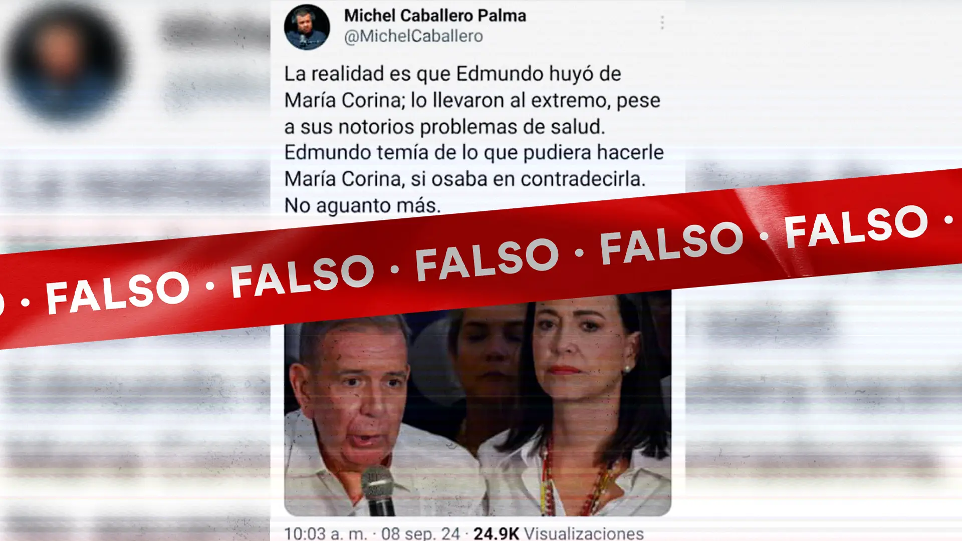 El vicepresidente del partido de gobierno Psuv y desinformantes alineados con el gobierno venezolano han difundido en redes sociales y televisión nacional la narrativa de que Edmundo González no huyó de la justicia venezolana sino de María Corina Machado y “la violencia” que trae consigo.