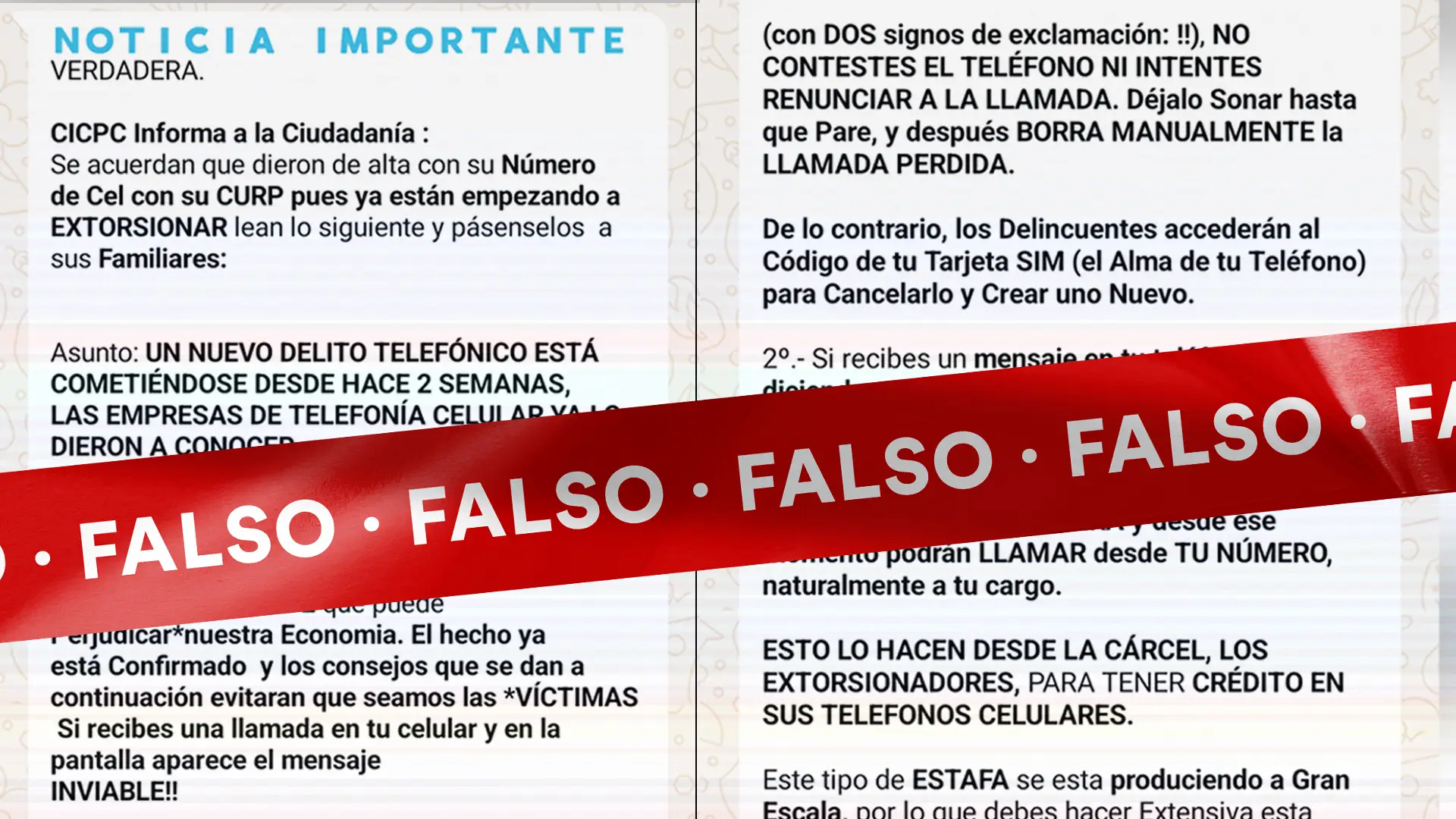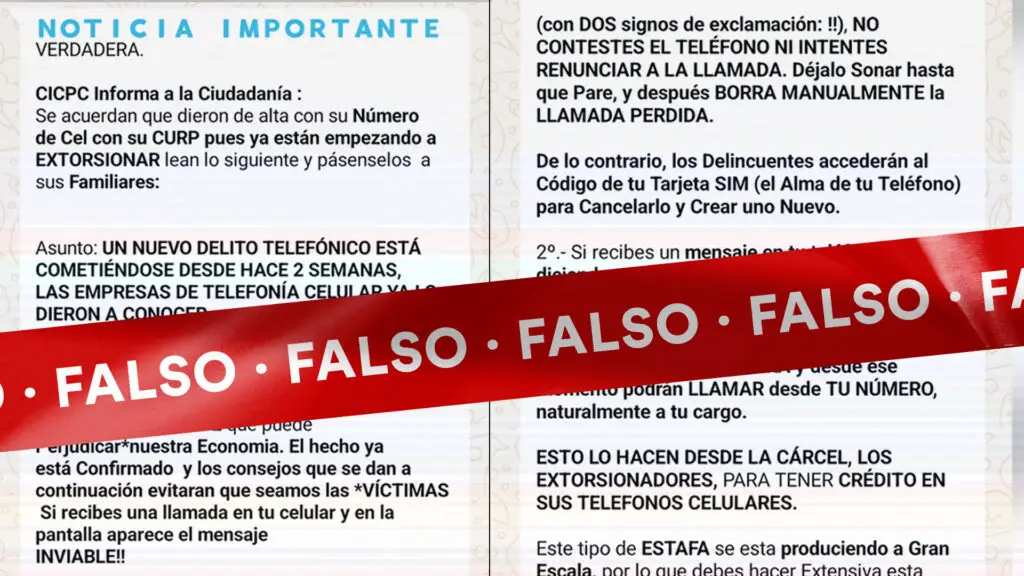 Es falso que el CICPC alertó de fraude en tarjetas SIM usando número de celular y CURP. Se trata de un bulo que circula, al menos, desde el año 2017, y que fue desmentido por Cazadores de Fake News en 2019 y luego en 2020, cuando se difundió nuevamente.