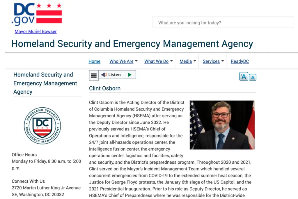 Ya con la información sobre el evento, se pudo ubicar un banco de imágenes de buena calidad que permitieron identificar a la persona que camina tan cerca del presidente de los Estados Unidos. El hombre es Clint Osborn, director interino de la Agencia de Manejo de Emergencias y Seguridad Nacional del Distrito de Columbia.