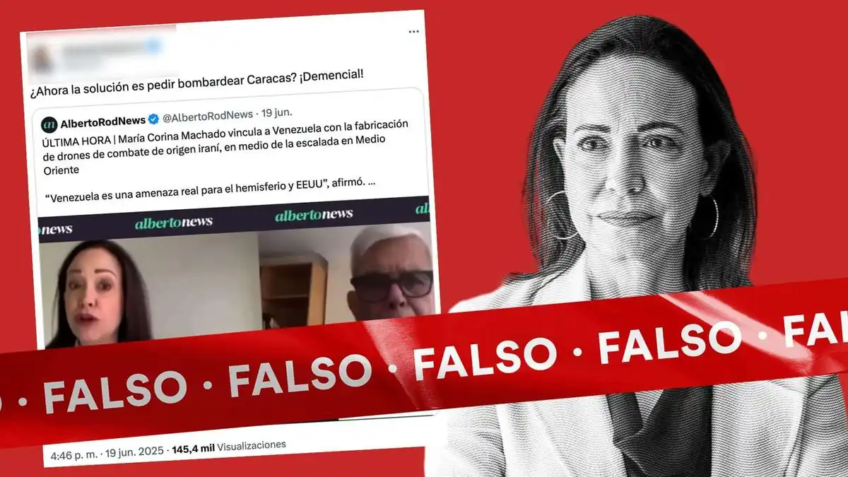 En X circulan publicaciones que aseguran que la dirigente opositora María Corina Machado pidió bombardear Venezuela. Estas afirmaciones surgieron a partir de una entrevista realizada el 18 de junio, donde Machado abordó la relación entre el gobierno venezolano e Irán.