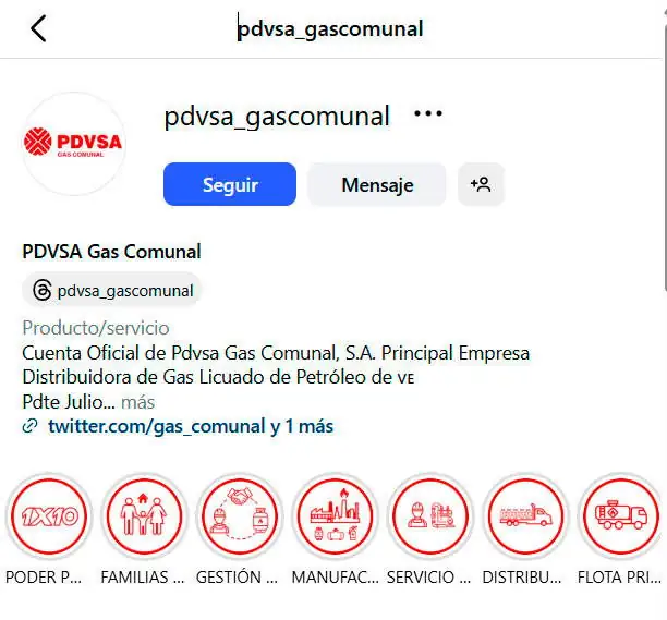 Perfil oficial de Pdvsa Gas Comunal