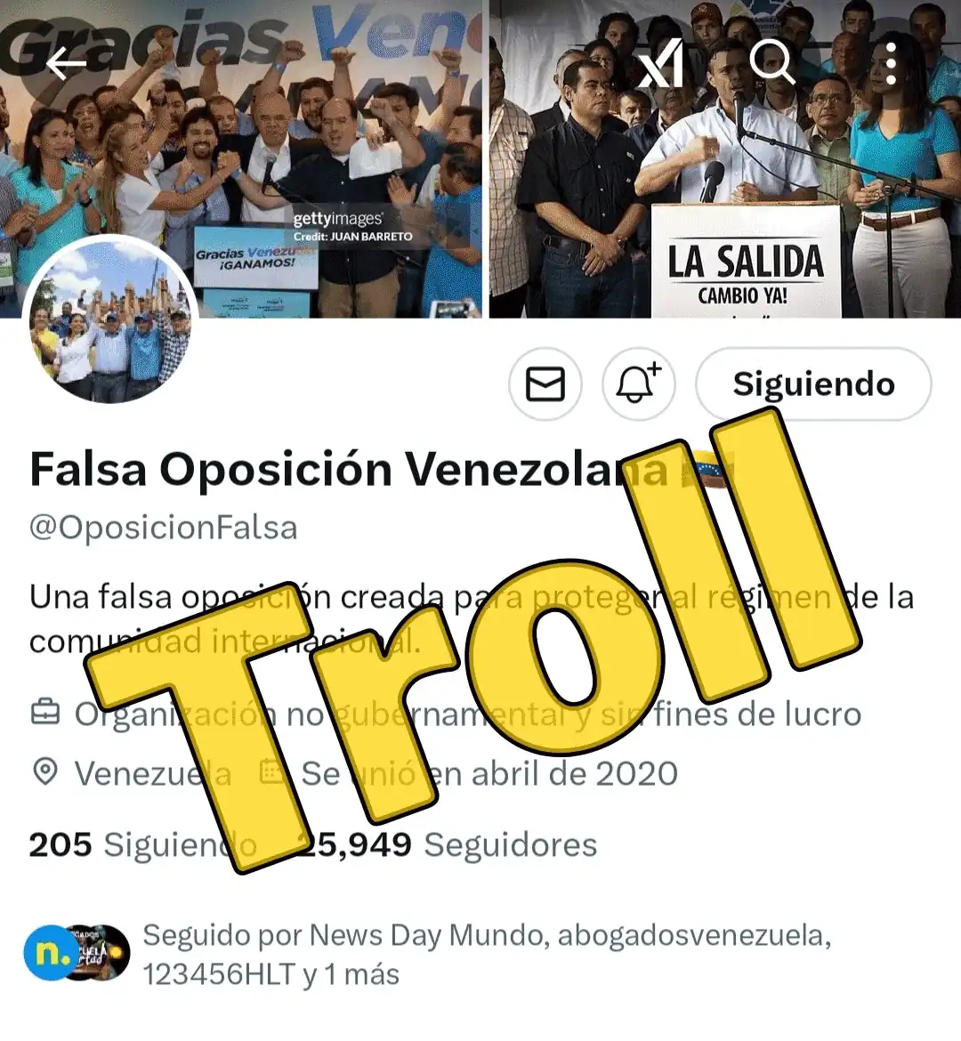 El 28 de enero de 2025, Cazadores de Fake News publicó un reporte en X revelando que @ErickPrinceSOS era en realidad la misma cuenta troll que antes operaba como @wilexispetare. Poco después, la cuenta cambió nuevamente su nombre de usuario y pasó a identificarse como @OposicionFalsa y luego como @Oposición_Falsa lo que se pudo comprobar —nuevamente— a través del ID: 1254194088083099650.