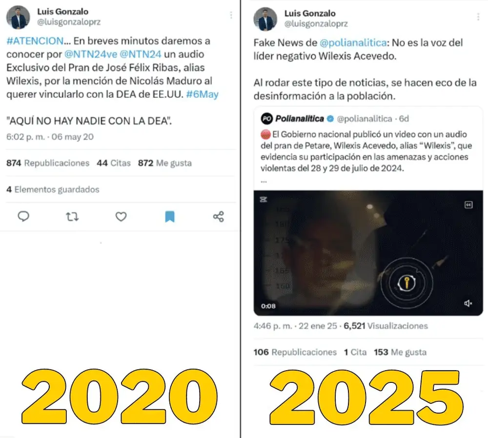 En la supuesta nota de voz de Wilexis, la “amenaza” menciona a Nicolás Maduro, a Diosdado Cabello y a Néstor Reverol, quien actualmente se desempeña como presidente de Corpozulia y ha tenido un perfil bajo desde que que dejó el Ministerio de Interior y Justicia en octubre de 2020. Esta relación permitió identificar que la nota de voz no era de 2024 ni de 2025, sino de 2020.