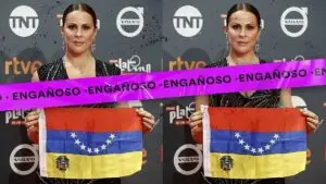 Una fotografía viral en Twitter señala que la cantante puertorriqueña habría sido fotografiada con la bandera de Venezuela invertida pero la persona en la foto es la actriz venezolana Malena González