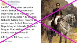 La información viral señala a Bolívar como "el hombre más importante de la historia", pero es un dato engañoso ya que corresponde a los resultados de una encuesta pública hecha hace más de 22 años, en la que ganó el poeta Rubén Darío