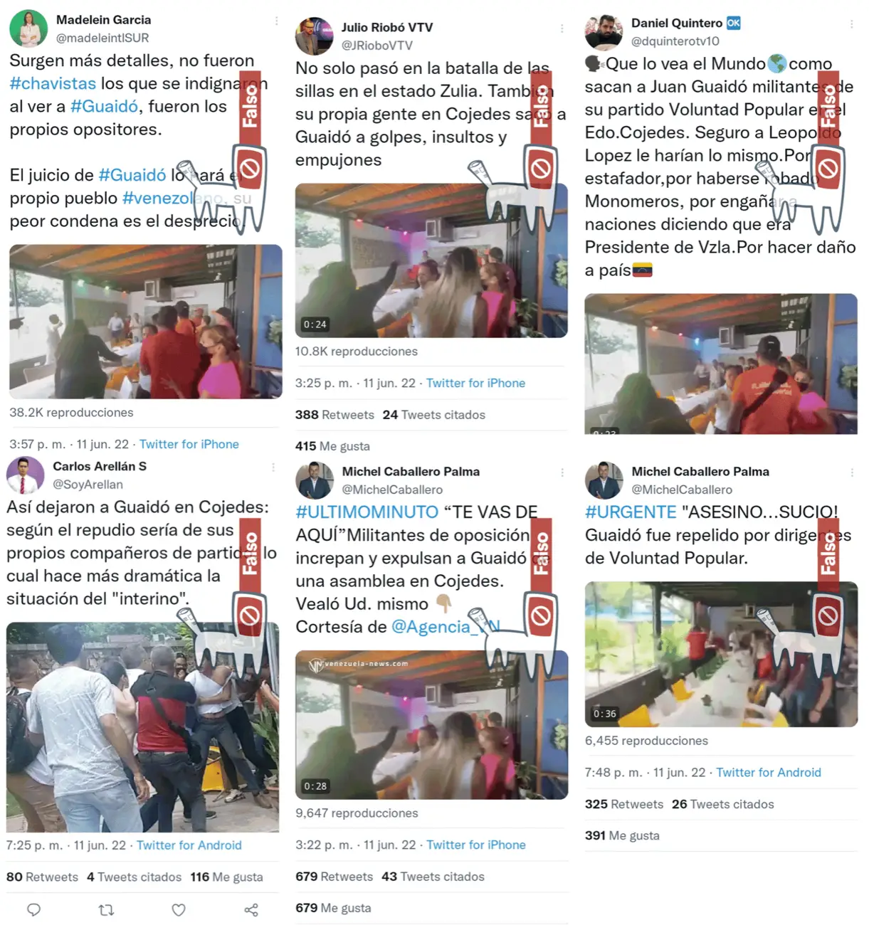 La información FALSA forma parte de una reciente ola de desinformación mediante la cual se intenta sembrar discordia entre la oposición venezolana y normalizar la violencia en contra de Guaidó y de opositores venezolanos.