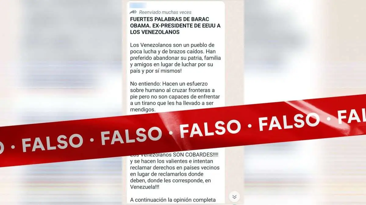 El bulo ha circulado desde el año 2019 y se ha mantenido vigente en 2020, 2021, y 2022, y nuevamente en 2023 señala que Barack Obama, expresidente de Estados Unidos, habría declarado a CNN que “los venezolanos son cobardes y se hacen los valientes” entre otras frases fuertes y despectivas acerca de la política del país.