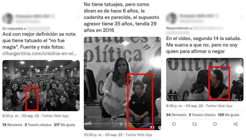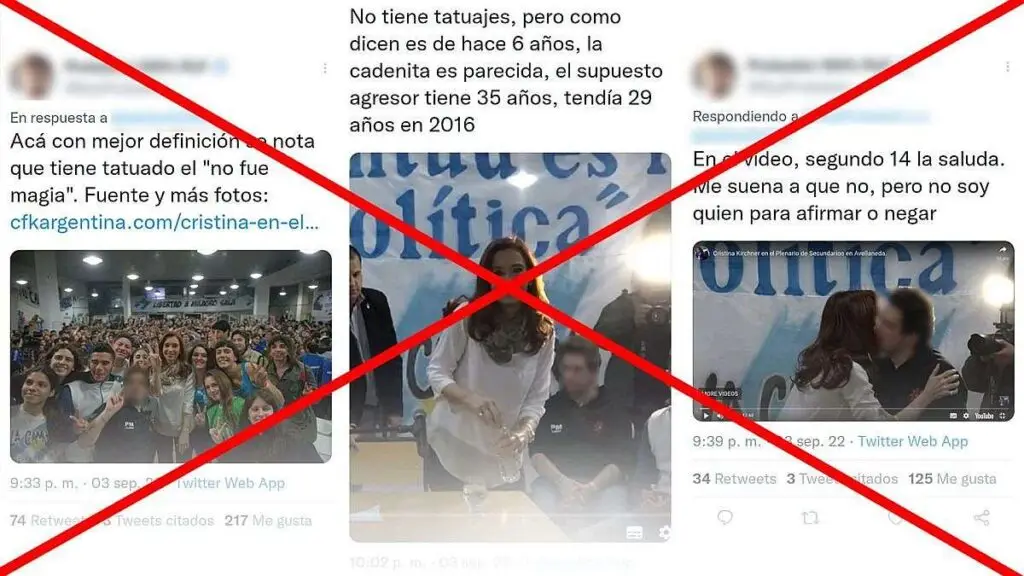 Una de las personas que la acompaña en los registros fue señalada como Fernando Sabag Montiel, el detenido por el atentado contra Fernández ocurrido el pasado primero de septiembre. Sin embargo, la información es falsa, ya que el militante que aparece en la foto responde al nombre de Ignacio Barbieri, quien desmintió directamente la información: