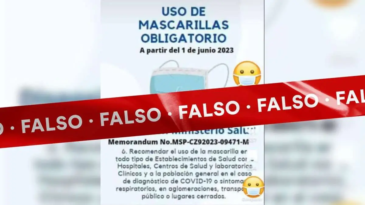 Circula en servicios de mensajería instantánea una imagen en la que el Ministerio de Salud supuestamente anuncia el uso obligatorio de mascarillas a partir del 1ero de junio del 2023.