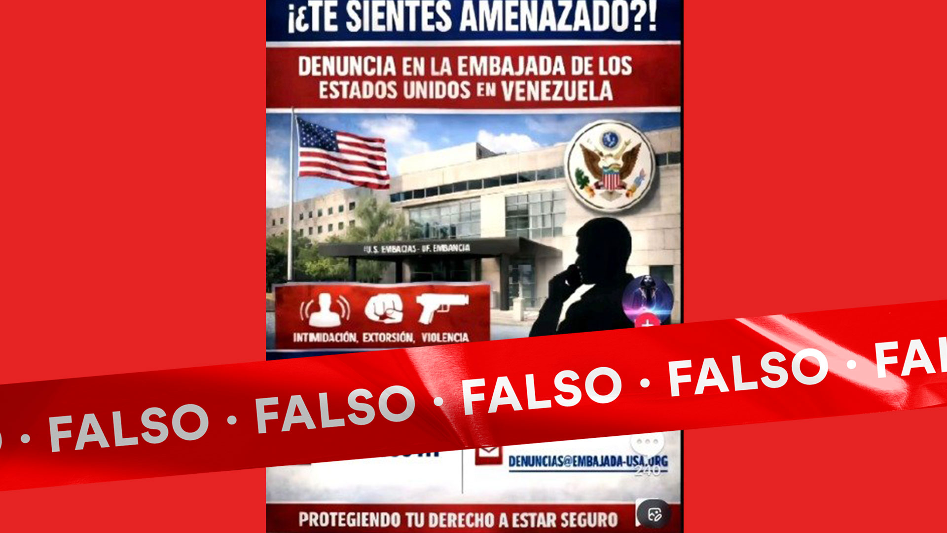 En las redes sociales se difundió una publicación en la que se afirma que la embajada de Estados Unidos en Caracas estaría recibiendo denuncias por intimidación, extorsión y violencia. Según la información, la sede diplomática estadounidense habría puesto a disposición una línea telefónica y una dirección de correo para atender a las víctimas.