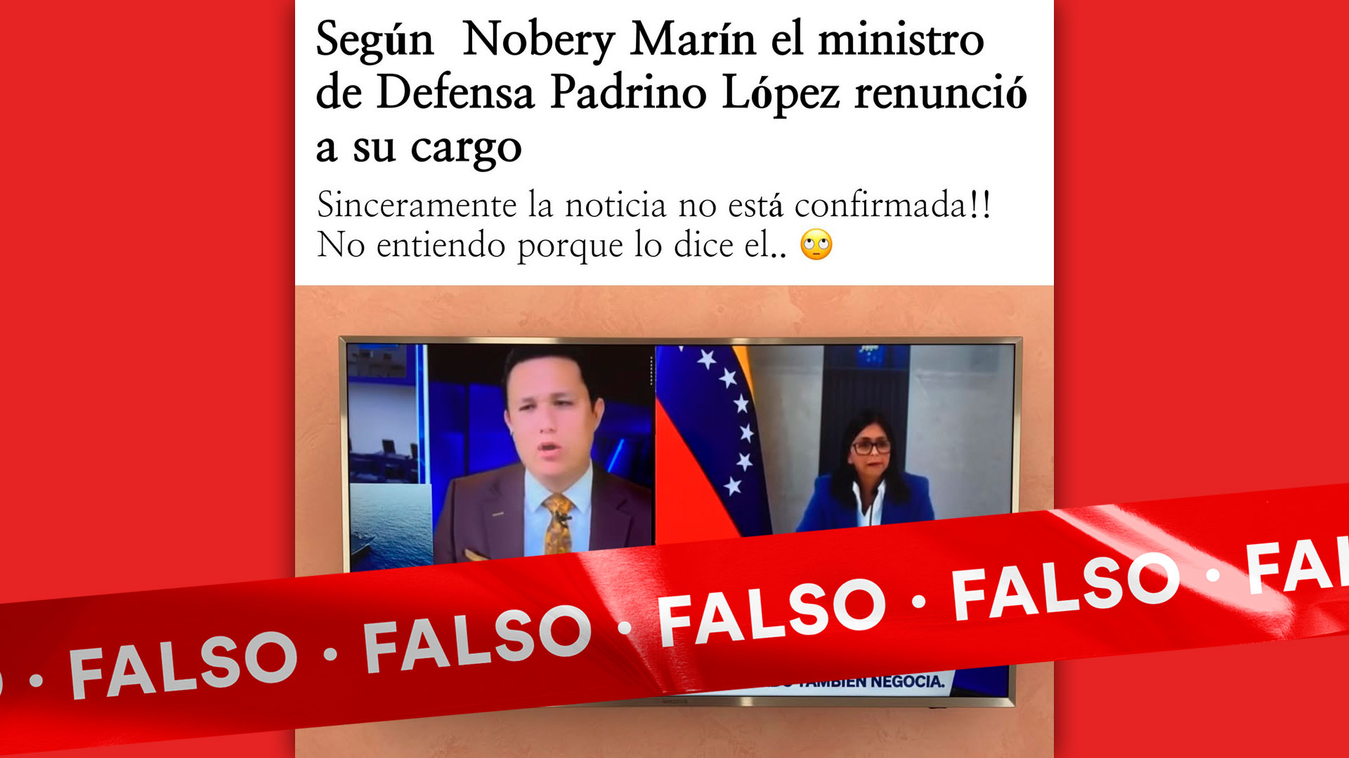Una cuenta anónima en la red social Instagram afirmó que el investigador Norbey Marín habría dicho que Vladimir Padrino López renunció a su cargo como ministro de Defensa de Venezuela. Este perfil, que cita a Marín como supuesta fuente de la información, indicó que la noticia “no está confirmada”.