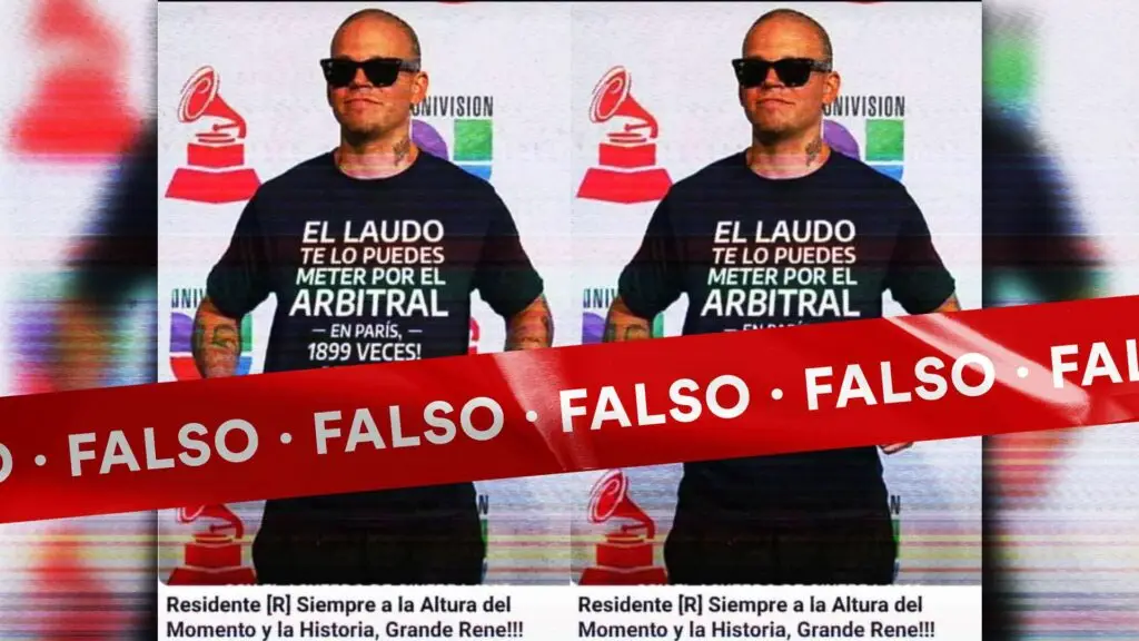 La investigación de Cazadores de Fake News determinó que la imagen es una manipulación digital. La imagen original data del 2011 y, en esa ocasión, Residente reclamaba educación gratuita para algunos países de Latinoamérica.