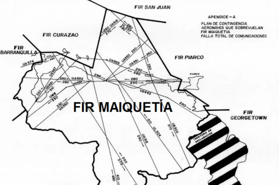 El FIR Maiquetía, en cambio, cubre una zona mucho más extensa que incluye tanto espacio soberano venezolano como áreas internacionales, una diferencia clave.